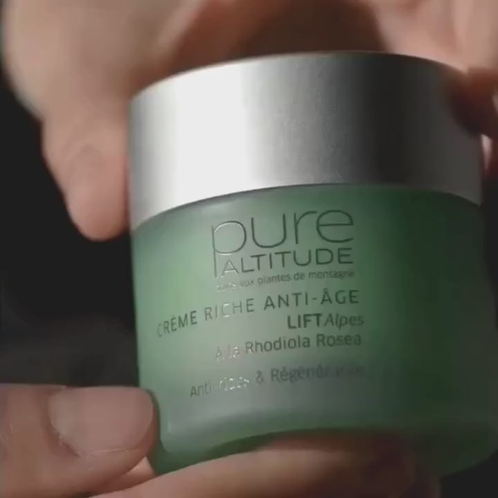- The Rich Anti-Aging Cream visibly reduces wrinkles stimulates cellular activity to repair skin damage due to ageing, while regenerating altitude plants are combined with Rhodiola Rosea, a powerful antioxidant. Rosehip oil, rich in omega 6, nourishes and softens the epidermis.